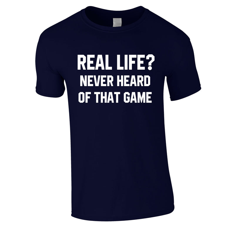 When you spend so much time playing games, you may forget about the outside world, but that's OK. Our Real Life, Never Heard Of That Game T Shirt is for those occasions.